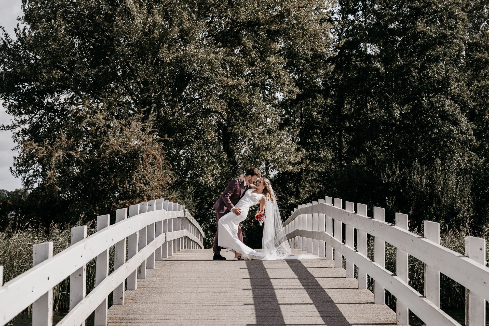 Na de first look - en second look voor hun naasten - vervolgden wij onze weg naar de shootlocatie. Vooraf afgestemd, ga ik met het bruidspaar naar een locatie om mooie beelden van hun tweeën te fotograferen. Voor Djamyl en Jasmijn was dit de plek was ze verloofd raakten. Dus persoonlijker kan bijna niet! Ik hielp met de plekjes voor perfect zonlicht, mooie poses en spontane plaatjes. Ik maakte natuurlijk de foto's, maar het bruidspaar maakte de foto's fantastisch. Prachtig zijn ze geworden.