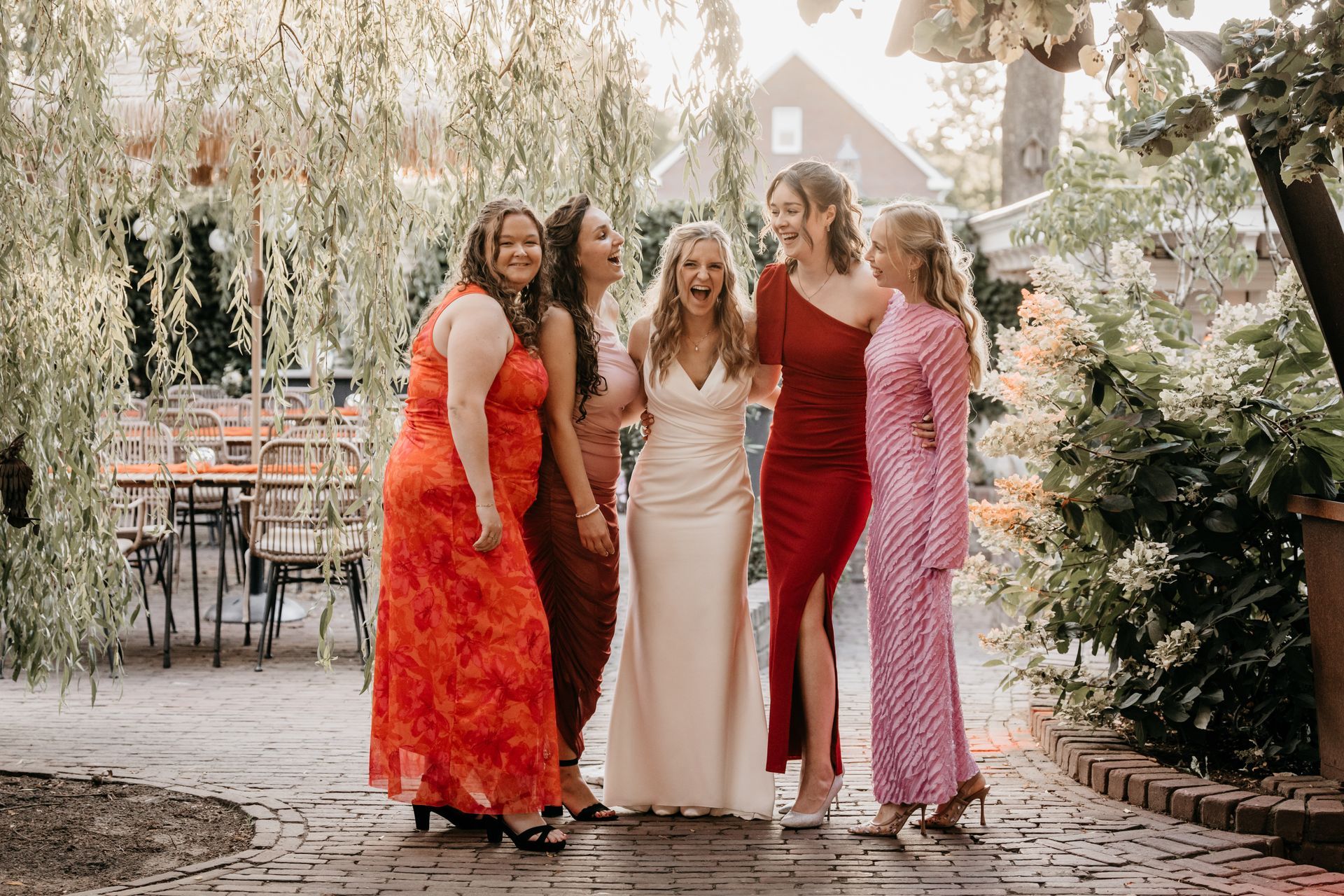 Na een heerlijke lunch, gingen we door naar de trouwlocatie: Onder Ons Dalfsen. Een intieme locatie waar ceremonie, diner en feest samenkomen. De ceremonie was op een pleintje met een kleine groep. Heel persoonlijk, zoals het bruidspaar is. Fijne woorden, een paar tranen en weer kippenvel-momenten. Zelf heb ik ook altijd een brok in mijn keel tijdens de geloftes, want meer puur kan je het niet krijgen.