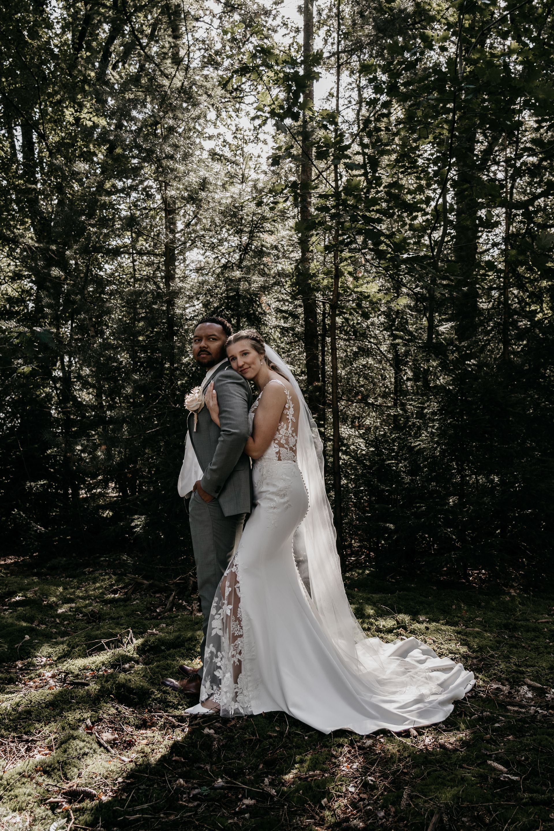 first look: het moment dat Lucia en Javier elkaar zagen. Wat blijft dit een fantastisch moment! Met nog de zenuwen van die ochtend, vervolgden we ons naar de fotoshoot in het bos bij Staphorst. Zon en schaduw werd gecombineerd met mooie groene natuur, wat zorgde voor prachtige, zachte beelden.